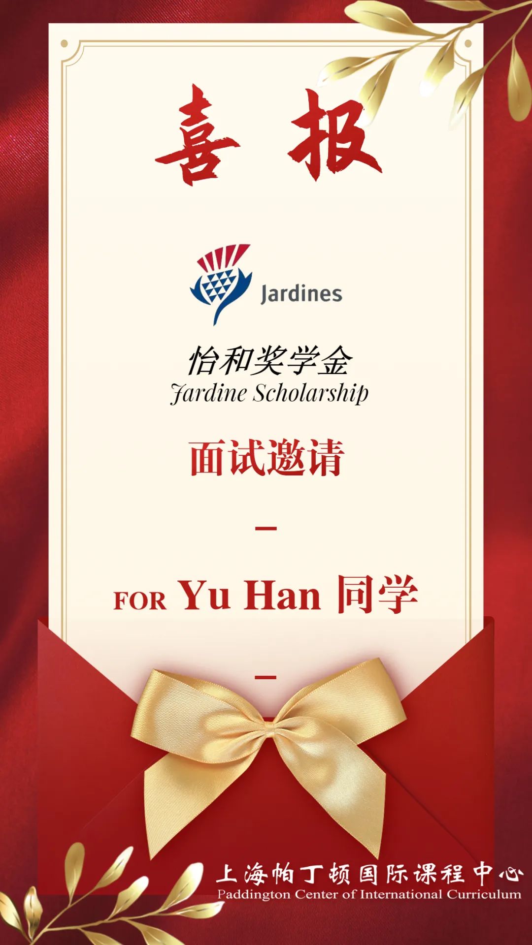 帕丁顿国际课程中心Yu Han同学日前收到怡和奖学金的面试邀请,有望获得超过160万元人民币的奖学金,同时也预示着帕校学子在牛剑申请方面迈出了重要一步。