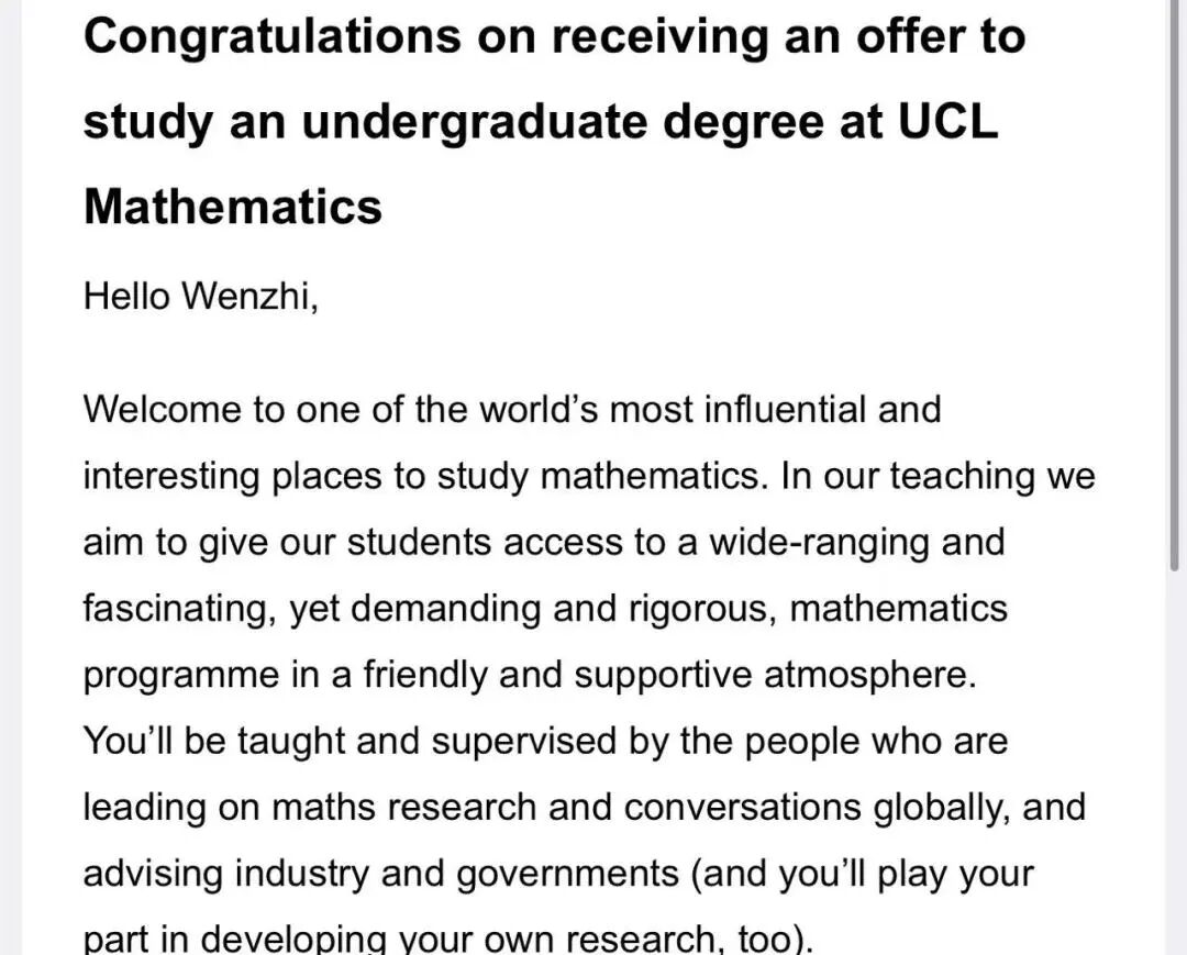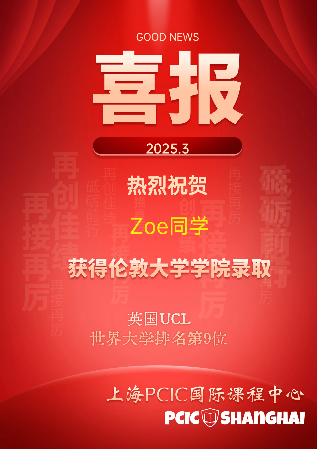 Zoe同学以优异的成绩获得数学统计专业的录取,体现了PCIC学子们强大的学术能力。